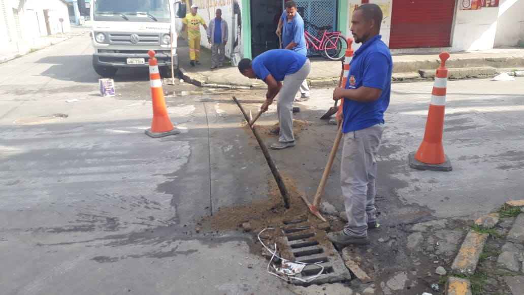 Toda a rede de drenagem formada por tubos vai ser substituída, pois as atuais se encontram danificadas. Estão sendo instalados aproximadamente 13 metros em tubulação nova na via.