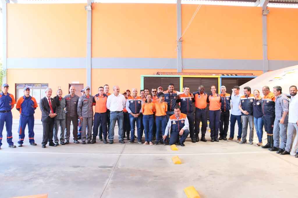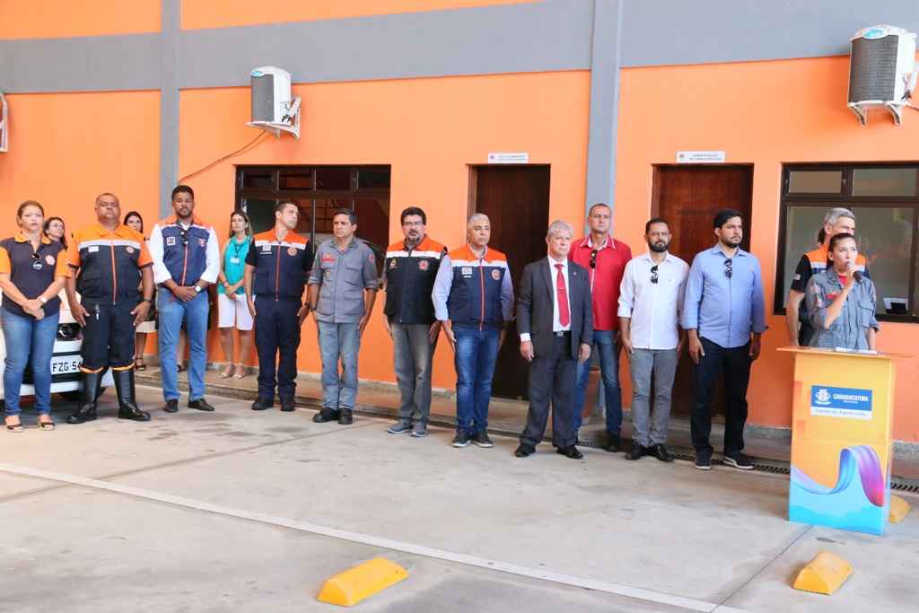#PraCegoVer: Várias autoridades e agentes da Defesa Civil e bombeiros posam para foto oficial (Foto: Divulgação/PMC)