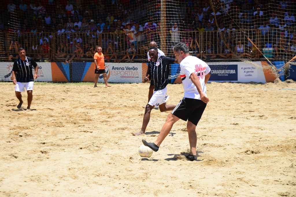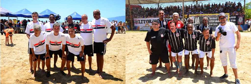 O amistoso com os craques veteranos de São Paulo e Corinthians terminou empatado em 3 a 3 no último domingo (26/01), Arena Verão Esportiva, no Jardim Aruan, em Caraguatatuba. Quem compareceu ao desfio presenciou um jogo descontraído, mas com a mesma rivalidade tradicional que as equipes levaram para os gramados nas décadas de 70, 80, 90 e ainda se mantém nos dias atuais.