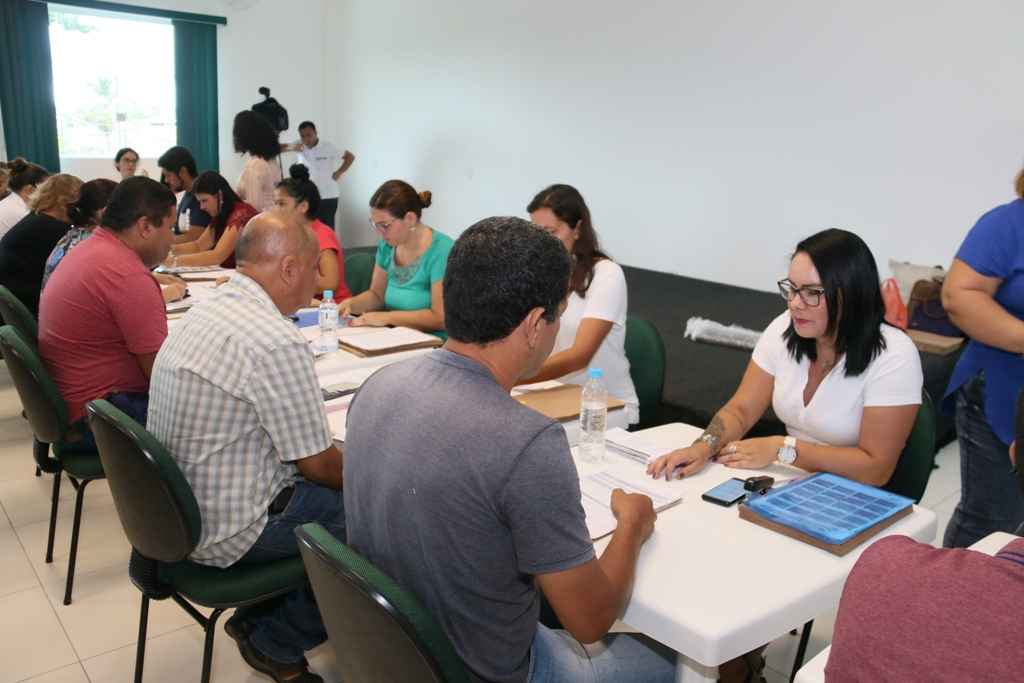 #PraCegoVer: mais de seis pessoas recebem documentação dos candidatos em fileira; (Foto: Divulgação/PMC)
