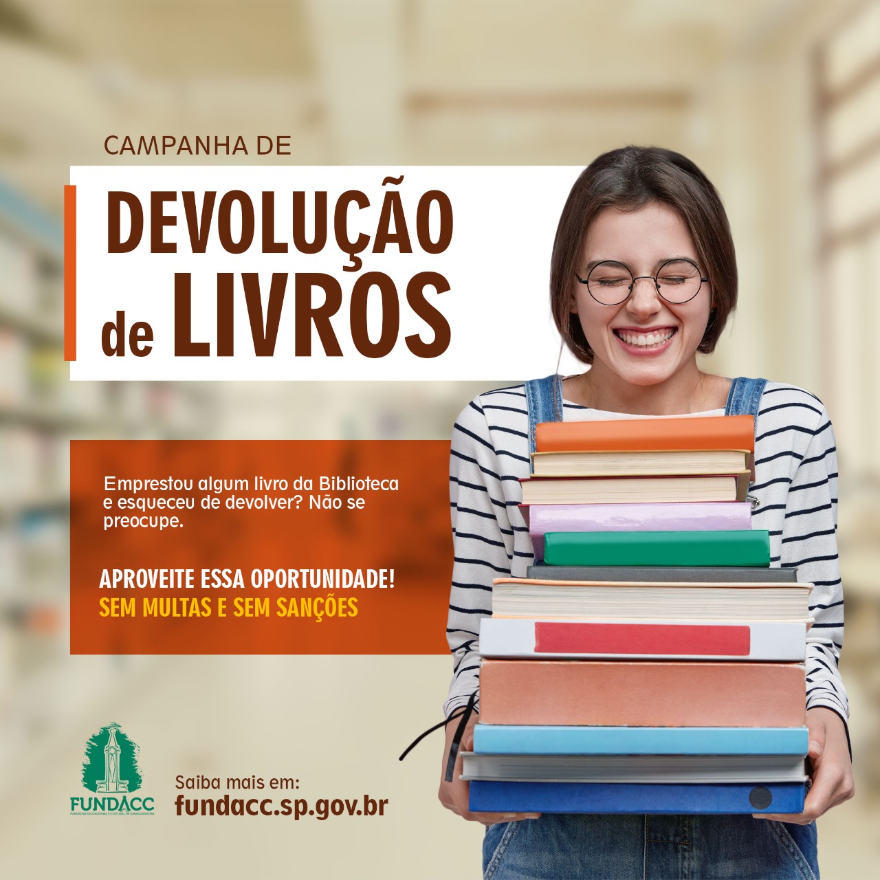 Mediante o retorno às atividades, a Fundação Educacional e Cultural de Caraguatatuba (FUNDACC) anuncia que a devolução dos itens que se encontram emprestados aos munícipes poderão ser devolvidos durante todo o mês de setembro sem nenhuma cobrança de multa.