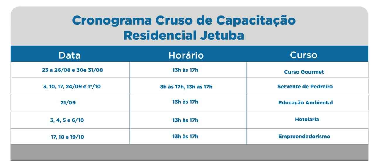 Inscrições para cursos de capacitação no Residencial Jetuba