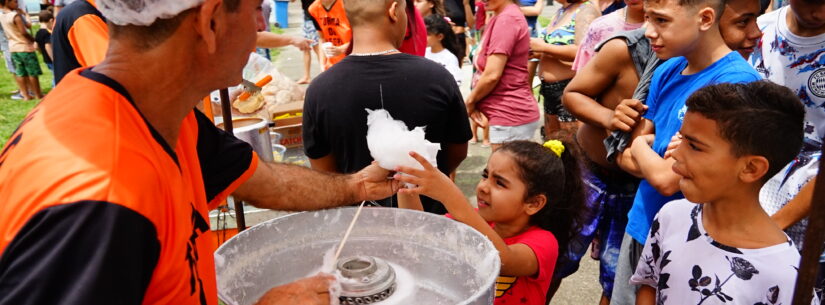Durante a festa, as crianças terão acesso em brinquedos como pula pula, piscina de bolinha e tobogã, além de pipocas, algodão doce e cachorro quente.