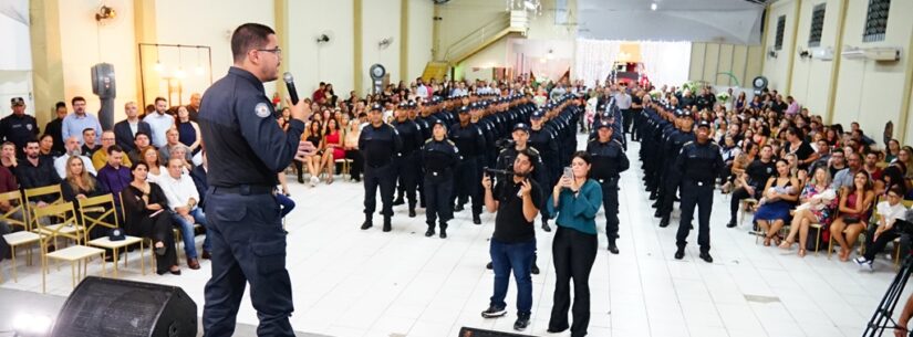 O prefeito disse ainda: “É com muito orgulho que apresento a vocês a melhor turma de todos os tempos, é a primogênita, é a turma que vai fazer a diferença. Entreguem cada vez mais para a população que é diferente, um povo resiliente, ordeiro, que esperam vocês por muitos anos. Estarei com os senhores ombro a ombro. Vejam em mim, muito mais que um prefeito, vejam um amigo que junto com vocês vai fazer a diferença na vida das pessoas. Honrem essa farda, honrem o brasão do município, façam o melhor de vocês, entreguem serviço público todos os dias e estarei com vocês até o final, seja como prefeito ou depois. Sejam bem-vindos”, concluiu.