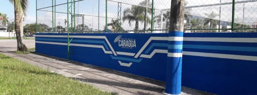 Funcionários da Secretaria de Administração da Prefeitura de Caraguatatuba concluíram a pintura do campo de futebol society do Espaço de Lazer Aurora Mendes de Souza, no bairro do Ipiranga, na região central. Além do serviço do campo finalizado nesta segunda-feira (8/5), a equipe do setor revitalizou as pontes da Avenida Paulo Ferraz da Silva Porto, na Martim de Sá.