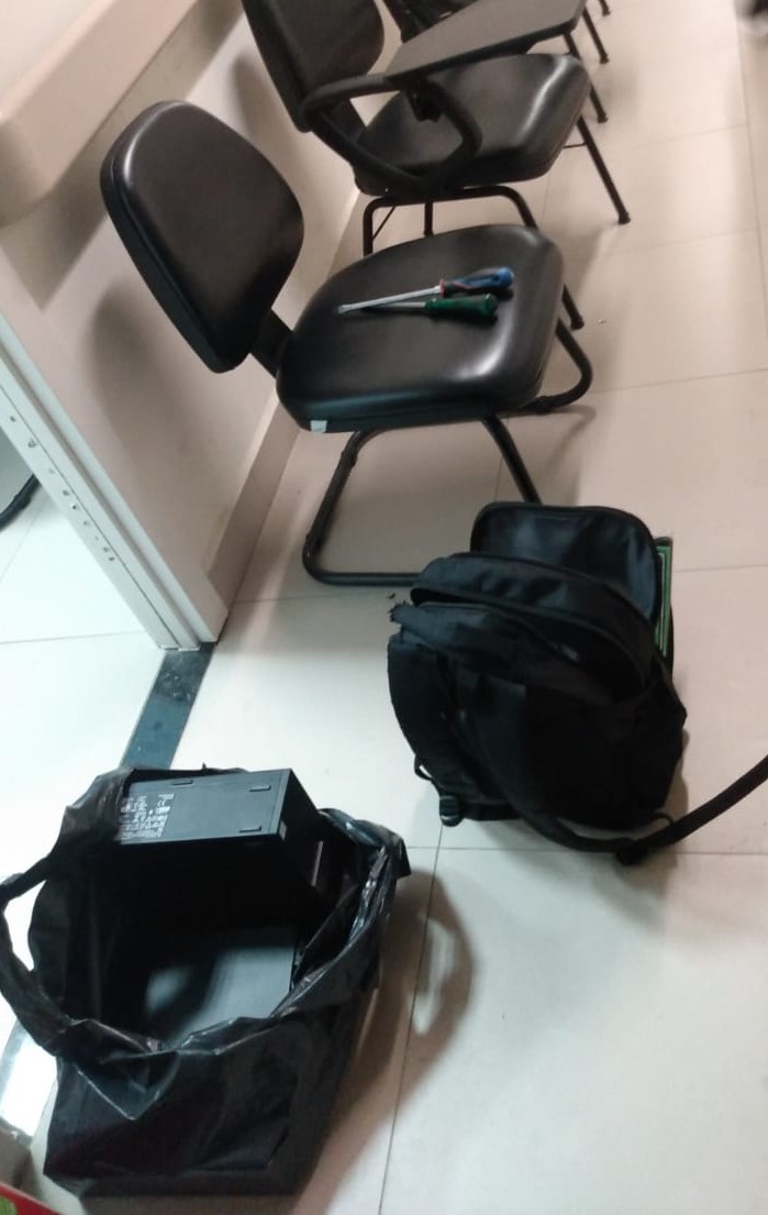 Ao notar a presença dos vigilantes, o indivíduo, que arrombou o cadeado do portão e a porta da Unidade, fugiu, deixando para trás as sacolas com os produtos a serem furtados: oito CPUs de computadores e equipamentos médicos como estetoscópios e otoscópios.