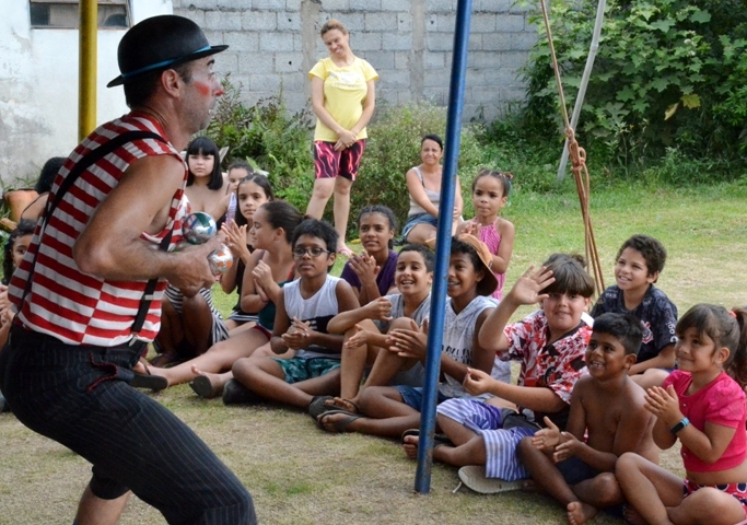 São oficinas de pintura, circo com palhaçaria, mágica e malabares, teatro, desenho e pintura, trabalhos manuais e muita brincadeira!