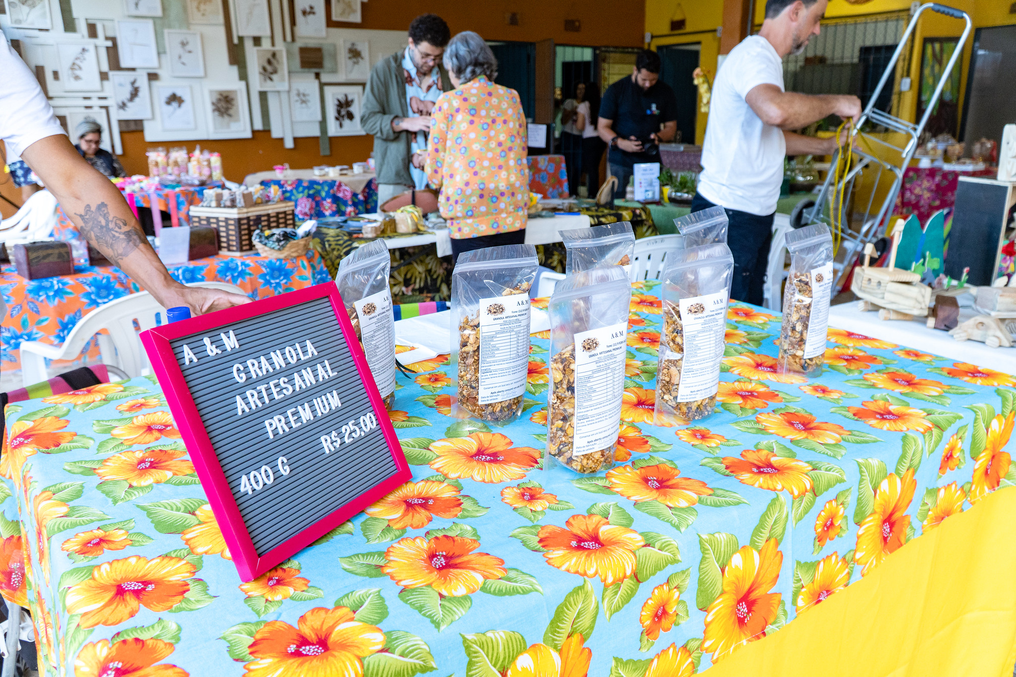 Além de diversas opções de presentes como crochês, bordados, pintura em quadros e tecidos, cosméticos e produtos naturais.