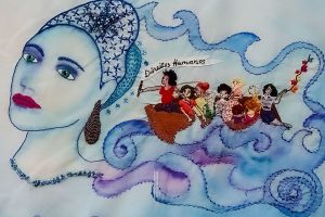 Os suportes do bordado ativista são o panfleto – quadradinho de tecido que aborda um tema, denunciando ou homenageando; o bóton que traz de forma muito objetiva uma causa; mas também os patuás e peças maiores como painéis, faixas e estandartes. São confeccionados com muito amor e distribuídos de forma gratuita para quem se identifica com a defesa dos direitos humanos e da democracia.