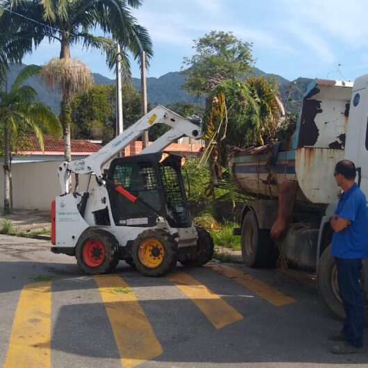 Na região Sul, as equipes trabalham na limpeza da avenida José Gerando Fernandes da Silva Filho, próximo à UPA do Pegorelli. Também há equipes espalhadas no Travessão e Perequê Mirim, fazendo a limpeza de pontos viciados de descarte irregular.