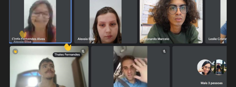#PraTodosVerem: Alguns membros do Conselho Municipal da Juventude de Caraguatatuba realizam reunião virtual em uma plataforma de comunicação digital.