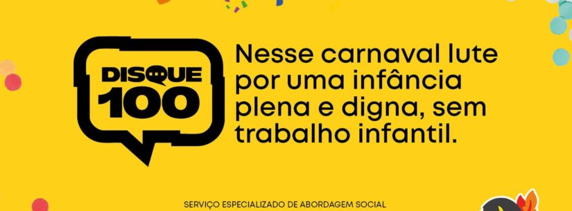 O Disque 100 está disponível 24 horas por dia, todos os dias da semana, incluindo feriados, para receber denúncias de violações de direitos. Para os casos de trabalho infantil estaremos com o Serviço Especializado em Abordagem Social no telefone (12) 99784-9860 ligação ou mensagem pelo Whatshapp das 8h às 21h