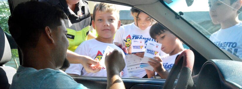 Direcionado aos alunos do 4º ano, do Ensino Fundamental I, o programa é uma parceria entre as secretarias de Educação e Mobilidade Urbana e Proteção ao Cidadão, ministrado pelos agentes de trânsitos Luber Castigliola e Luciane Aparecida dos Santos.