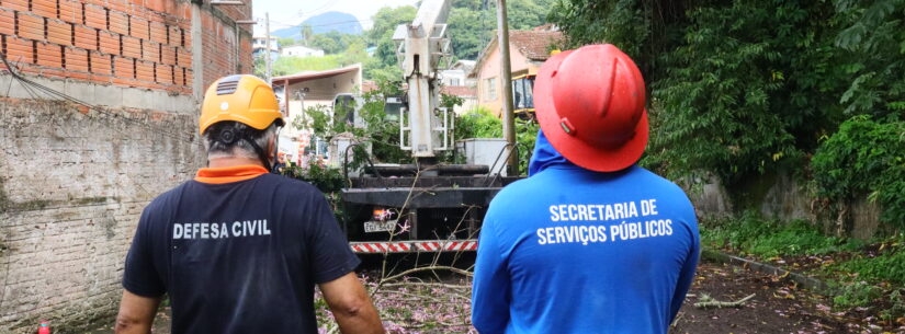 Um árvore de grande porte de aproximadamente 18 metros, foi retirada em uma operação que envolveu técnicos da Defesa Civil, Secretaria de Serviços Públicos e da empresa de energia elétrica EDP-SP, na rua Sebastião Mariano Nepomuceno, em frente ao número 965 no bairro Benfica, região central de Caraguatatuba.