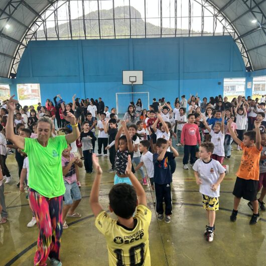 Durante a manhã, alunos da EMEF Maria Aparecida de Carvalho, no bairro Tinga, praticaram 20 minutos de atividade física e se divertiram na quadra. “É uma experiência muito legal e saudável. A gente aprende os movimentos e tem uma criatividade maior. Gostei muito”, disse a estudante Ana Beatriz. “Você pratica atividade física e ao mesmo tempo consegue brincar e dançar. Foi muito legal”, disse a Mariana, estudante do 5º ano.