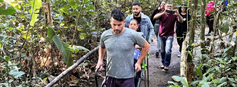 A equipe de servidores do Parque Natural Municipal do Juqueriquerê passou capacitação sobre como usar a cadeira Julietti, específica para transportar pessoas com deficiência (PcD) em trilhas na natureza.