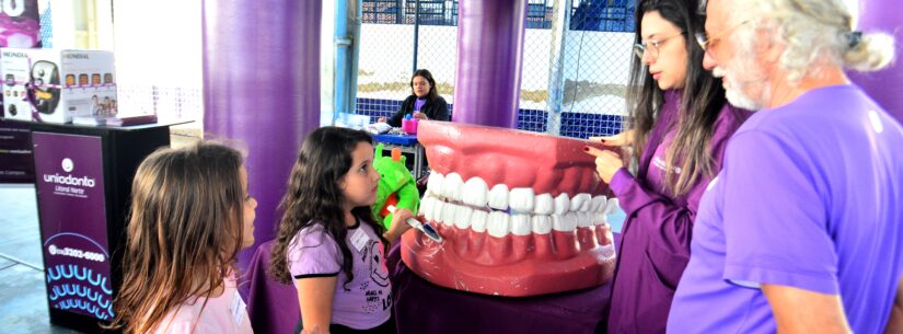 Cerca de 800 famílias participaram das ações do projeto “Dentista na Escola”, uma parceria das Secretarias da Saúde, Educação, Fundo Social e Uniodonto, realizada na manhã de sábado (31), na CIEFI Professora Edna Maria Nogueira Ferraz, no Perequê-Mirim.
