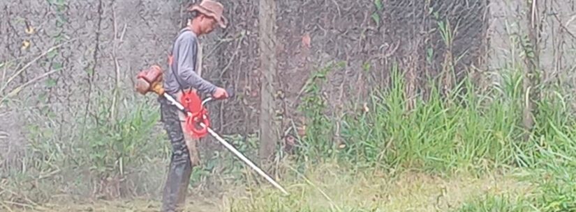 #PraTodosVerem: Bolsista do PEAD executa roçada mecânica dentro do Residencial Jetuba (Foto: Divulgação/PMC)
