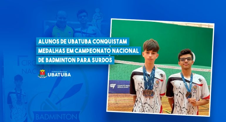 Dois estudantes da rede municipal de ensino de Ubatuba participaram da 2ª Etapa do Nacional de Badminton para Surdos, realizada entre os dias 19 e 20 de julho, na cidade de São Paulo. Isaque dos Santos Camargo, de 17 anos, e Rhajyv Radis Baptista, de 15, conquistaram, juntos, quatro medalhas de bronze na competição.