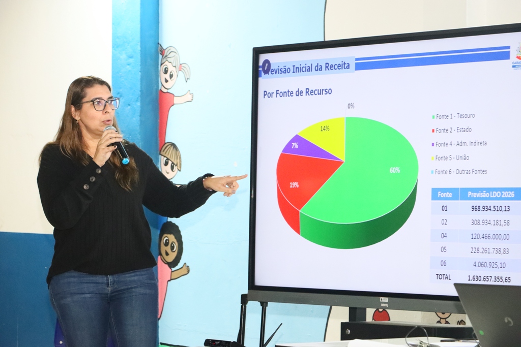 #PraTodosVerem: Supervisora de governança da Secretaria de Planejamento Estratégico e Desenvolvimento, Ediline Boytchuk, explica origem dos R$ 1.630.657.355,65 previstos para o orçamento de 2026 (Foto: Luis Gava/PMC)