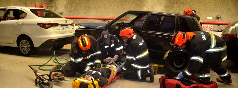 O exercício foi realizado no interior Túnel 101 no Contorno Norte da Rodovia dos Tamoios e envolveu a simulação da colisão de um veículo contra um ciclista e, consequentemente, um engavetamento com dois veículos de passeio e uma van, que vinham logo atrás.