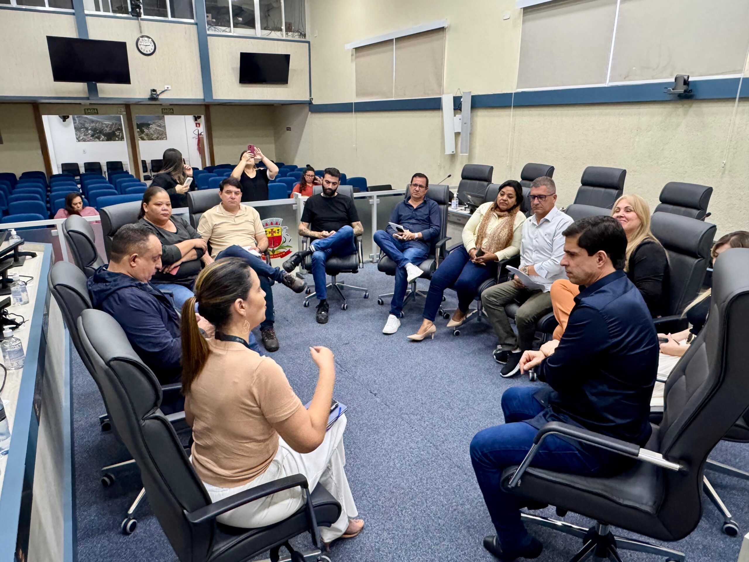 A reunião foi conduzida pelo presidente da Casa, vereador Antonio Carlos Junior e contou com a presença das vereadoras, Cássia Gonçalves (Cássia do PT), Gislaine Oliveira (Dra. Lalá), Vera Morais e Vilma Teixeira, e dos vereadores, Cristian Bota, Islando Ramos (Bigode), Danster Fernandes, Maurílio Moreira e Marcelo Pereira.