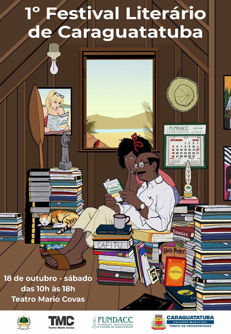 Está chegando o primeiro Festival Literário de Caraguatatuba! Neste sábado (18/10), o Teatro Mario Covas receberá a partir das 10h, uma programação incrível, cheia de atrações gratuitas para o público de todas as idades. Uma iniciativa da Fundacc (Fundação Educacional e Cultural de Caraguatatuba), por meio da Comissão Municipal Setorial de Literatura.