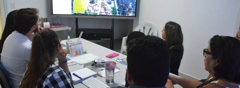 Antes de percorrer o bairro, a secretária de Habitação, Fátima Rangel, se reuniu com a secretária executiva do Programa Cidade Legal, Candelária Reyes; a advogada Camila Souza; e o arquiteto do programa, Diego Barreto; além da diretora de Gestão e Planejamento Habitacional, Lilian Domingos de Souza; do chefe da Seção de Planejamento e Coordenação de Serviços, Rafael Rodrigo da Costa Guimarães, e do topógrafo, Ricardo de Lima Vieira.
