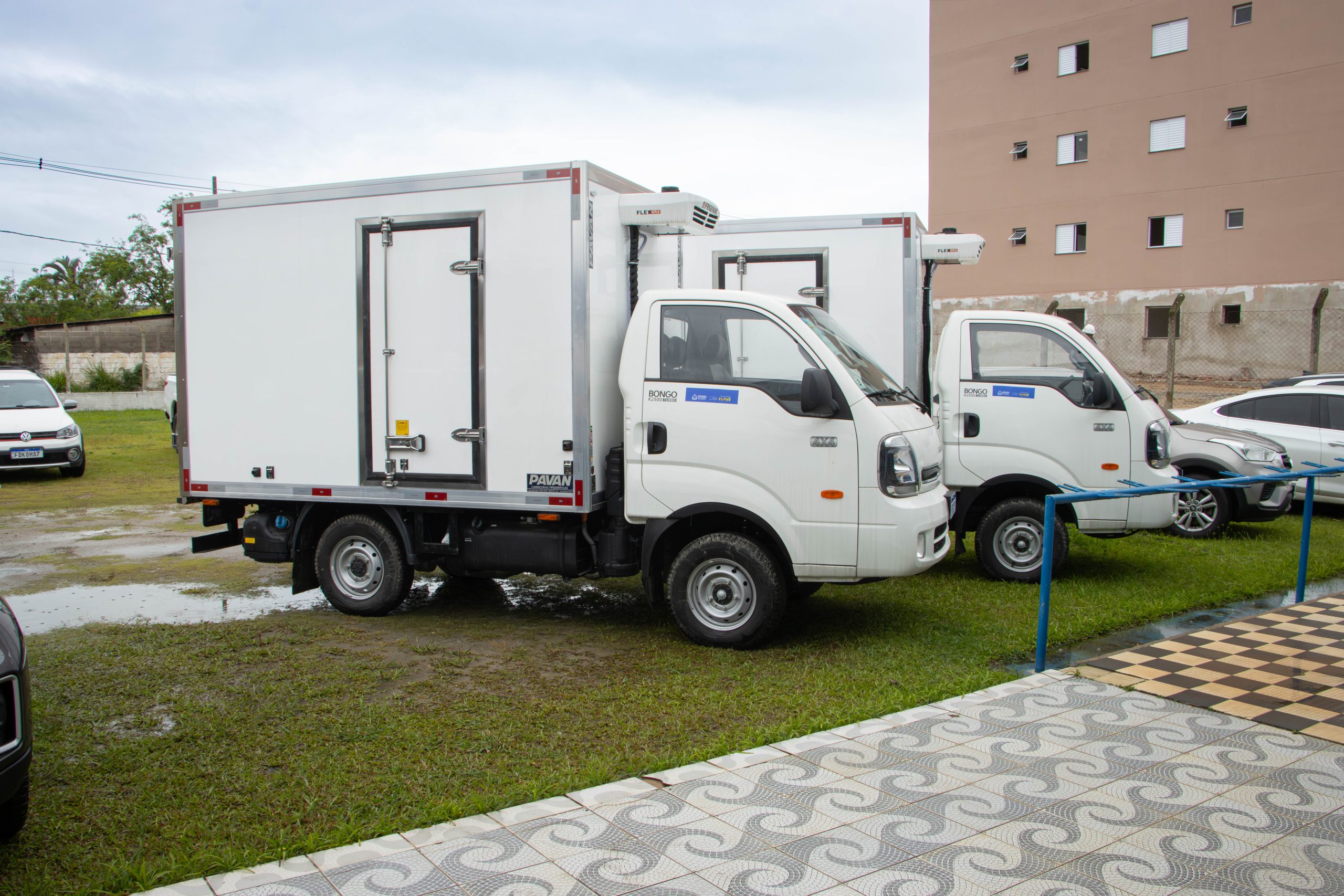 #PraTodosVerem – Dois caminhões frigoríficos estacionados.