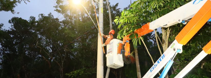 Em outubro, agentes da Defesa Civil de Caraguatatuba e funcionários da Secretaria de Serviços Públicos executaram a poda de 68 árvores e a supressão de oito para a instalação de iluminação na Rua Benedito Mendes de Souza, que dá acesso ao Morro de Santo Antônio, no Sumaré. Técnicos da Compel, empresa que presta serviço para EDP São Paulo, fixaram os postes e realizaram o cabeamento para a colocação das luminárias.