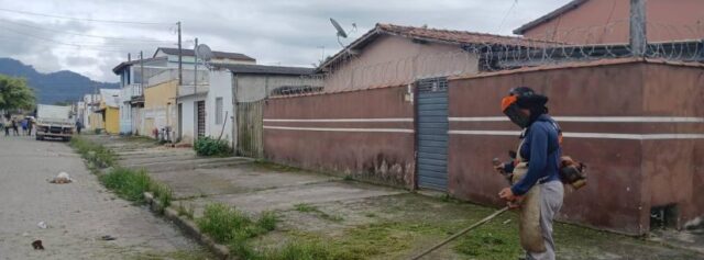 #PraTodosVerem: Bolsista do PEAD faz roçada mecânica em rua de Caraguatatuba (Foto: Divulgação/PMC)