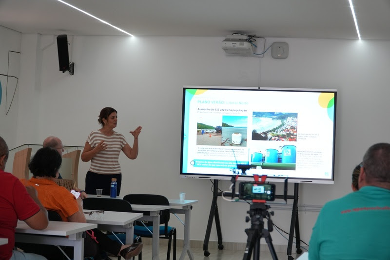 Monica Riccitelli, gerente regional da Sabesp no Litoral Norte apresenta plano de verão para jornalistas da região