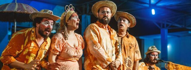 O coletivo teatral de repertório, criado em 2007, em São José do Rio Preto/SP, conta com onze espetáculos em circulação. Suas pesquisas vêm sendo pautadas no teatro popular, na dramaturgia autoral, na música ao vivo enquanto elemento textual e na ocupação de ruas e espaços não convencionais. Para além das produções artísticas, o coletivo desenvolve ações de compartilhamento de saberes, formação de público e difusão artístico-cultural por meio do projeto Território Cênico e da Mostra Cênica Resistências.