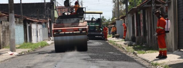 #PraTodosVerem: Rolo compactador executa recapeamento asfáltico da Rua Santa Izabel, no Perequê-Mirim (Dony Machado/PMC)