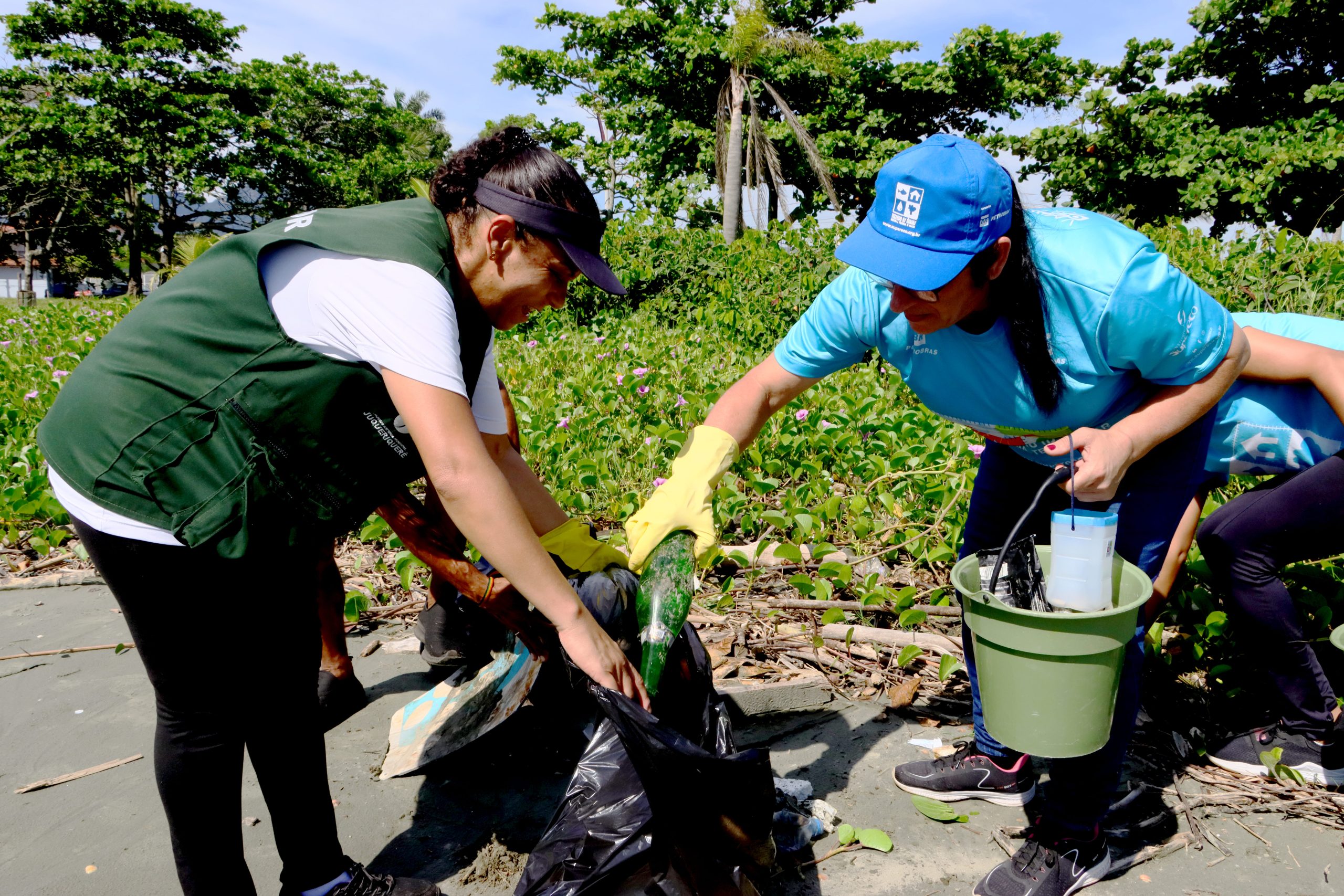 #PraTodosVerem – Participantes durante o mutirão de limpeza na praia do Porto Novo, em Caraguatatuba.
