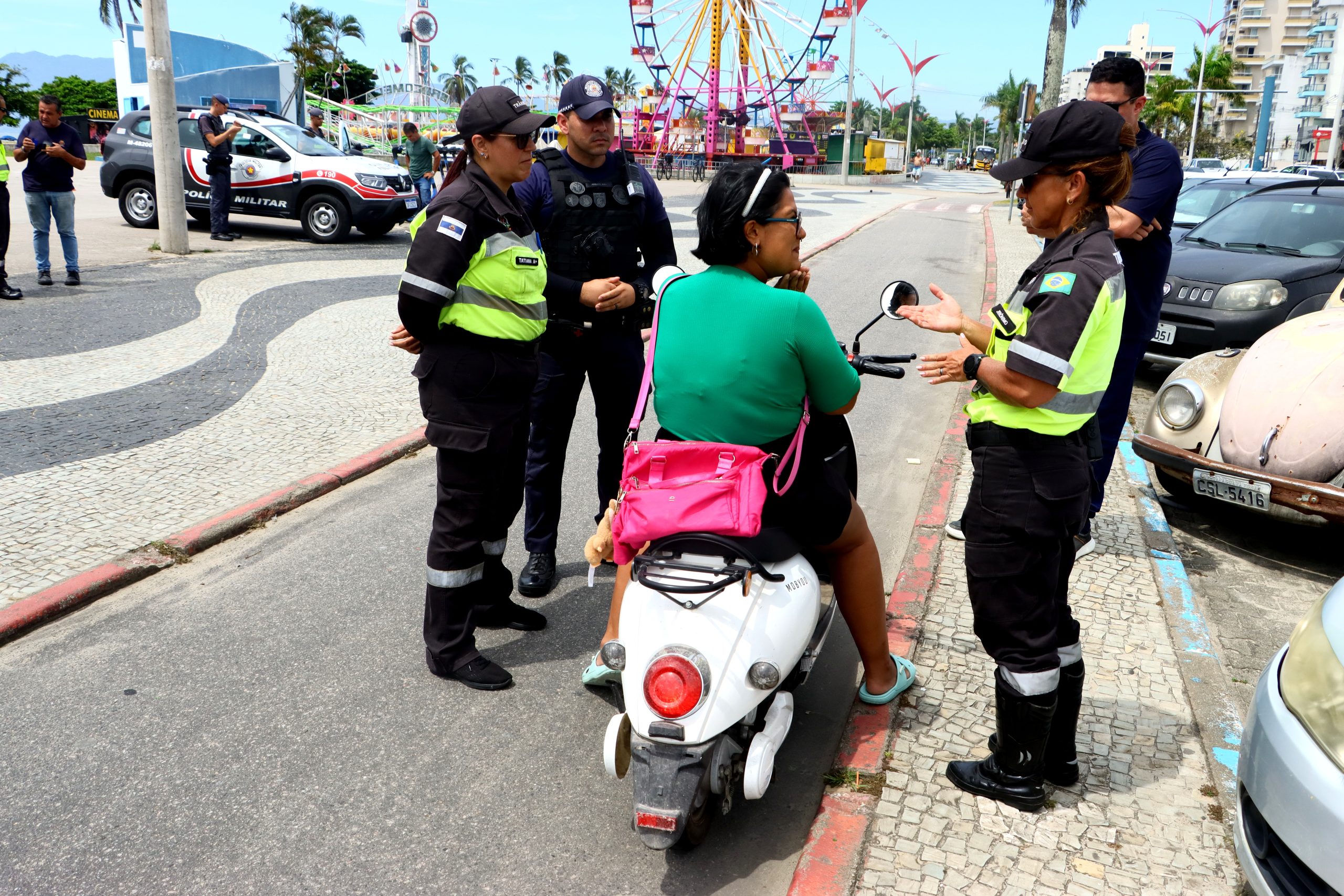 Agentes da Secretaria de Segurança Pública e Mobilidade Urbana da Prefeitura de Caraguatatuba, em parceria com a Polícia Militar, Guarda Civil Municipal (GCM) e o Departamento de Trânsito, realizaram uma ação educativa de orientação a condutores de ciclomotores, bicicletas elétricas, patinetes e demais equipamentos de mobilidade individual autopropelidos (veículos de mobilidade individual com motor próprio) na Avenida da Praia, no centro, na manhã de quarta-feira (7).