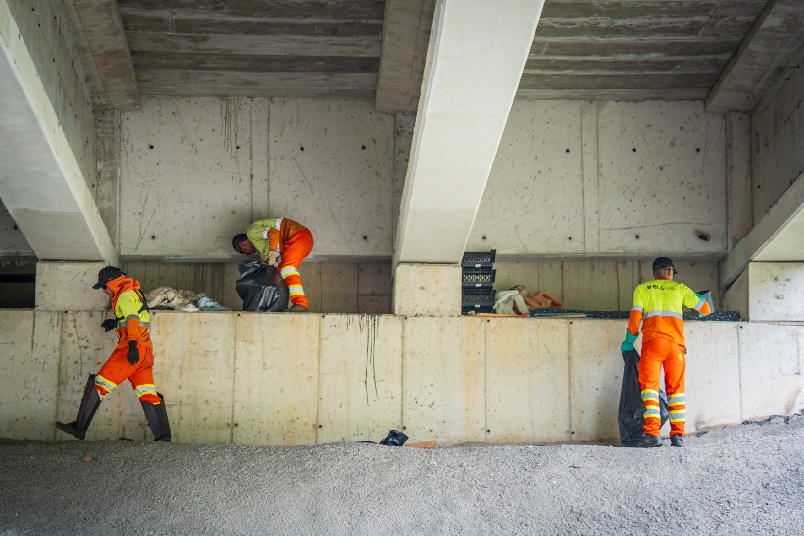 #PraTodosVerem: Equipe de funcionários de limpeza da Concessionária Tamoios retiram materiais e itens de pessoas em situação de rua em viaduto do bairro Tinga.