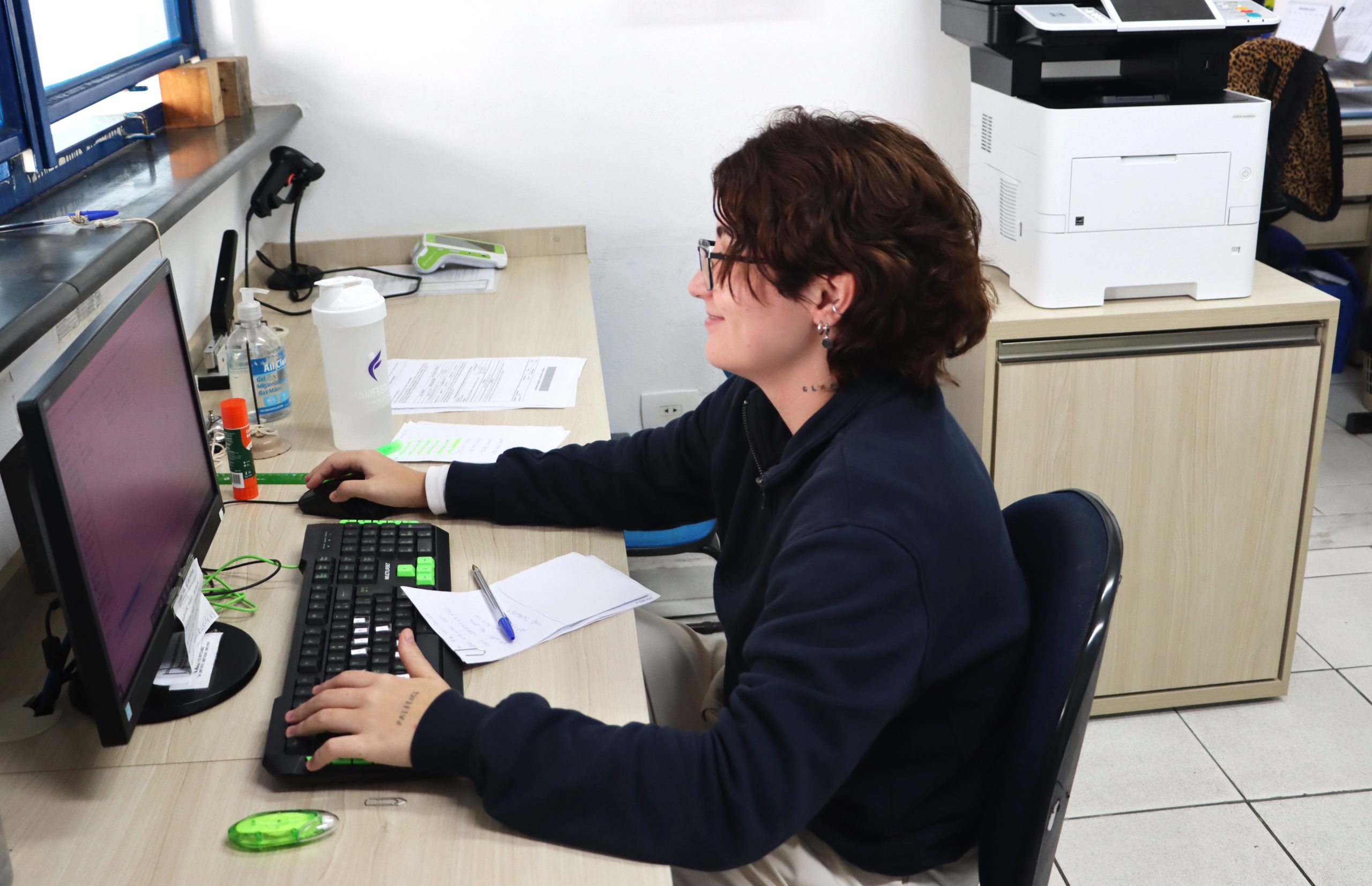 #PraTodosVerem: Estagiária da Seção de Recuperação de Créditos Fiscais (Dívida Ativa) da Secretaria da Fazenda trabalhando no computador (Foto: Dony Machado/PMC)