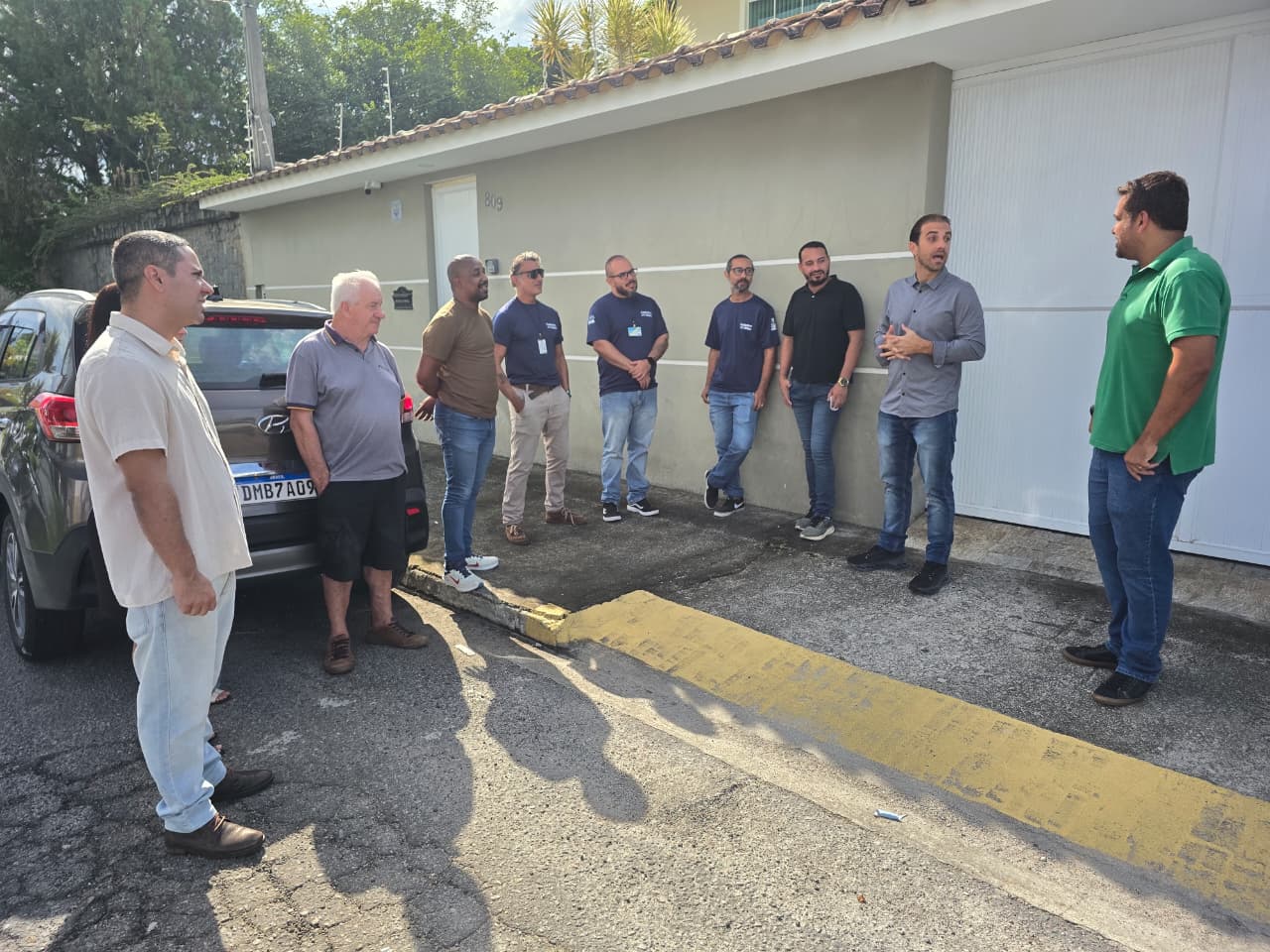 #PraTodosVerem: O secretário de Assistência Social, Dr. Marcelo Paiva, o prefeito Mateus Silva, o coordenador do Cadastro Único de Caraguatatuba, Gustavo Augusto Oliveira e representantes da equipe do Cadastro Único conversam durante cerimônia de entrega de veículos na sede da gestão municipal do Cadastro Único, no bairro Indaiá. (Foto: Iuri Antônio/PMC).