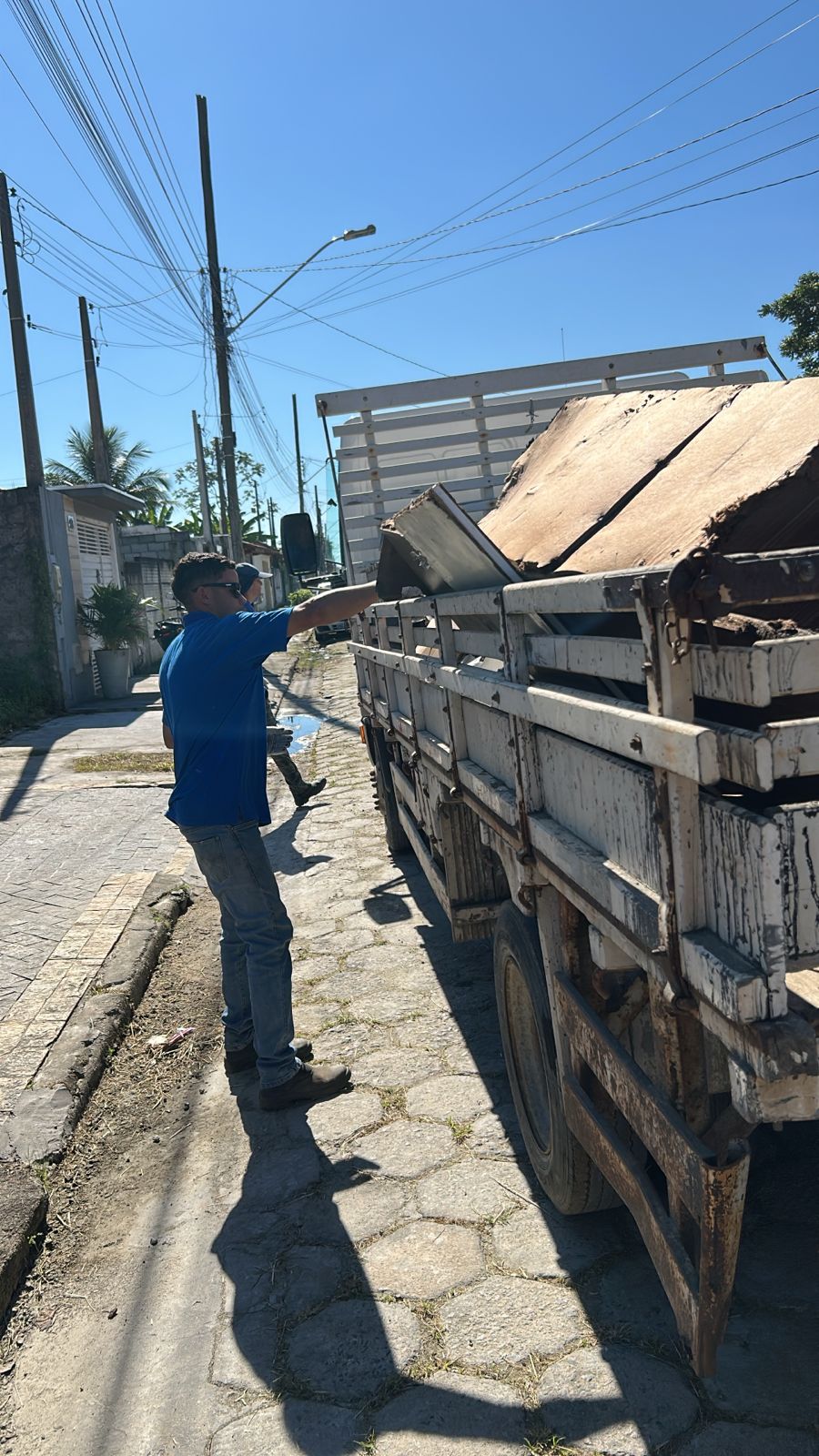 #PraTodosVerem: Equipe da Secretaria de Serviços Públicos recolhe móveis descartados na Operação Cata-Treco realizada no Balneário dos Golfinhos (Foto: Divulgação/PMC)